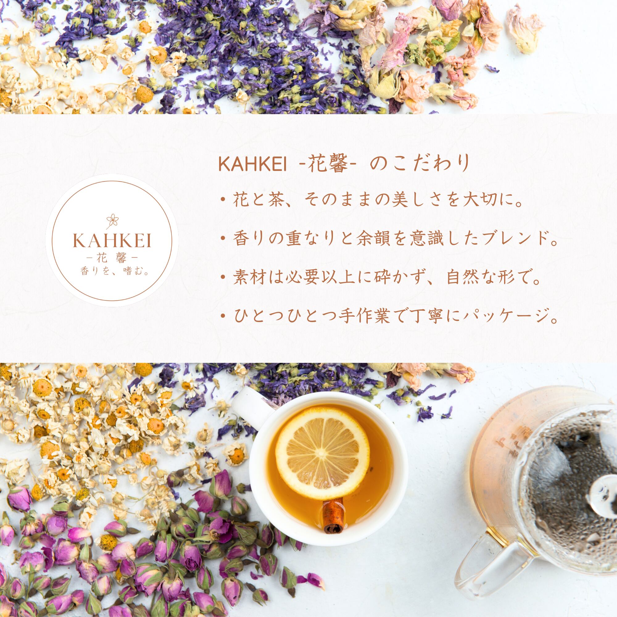 ・香りの変化をゆっくり楽しめる、贅沢な花茶