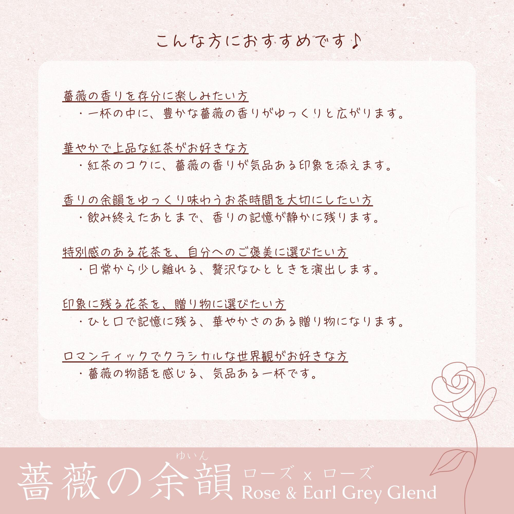 薔薇の余韻|薔薇×アールグレイの花茶|香りを重ねる余韻|茶葉カスタム対応|KAHKEI 花馨