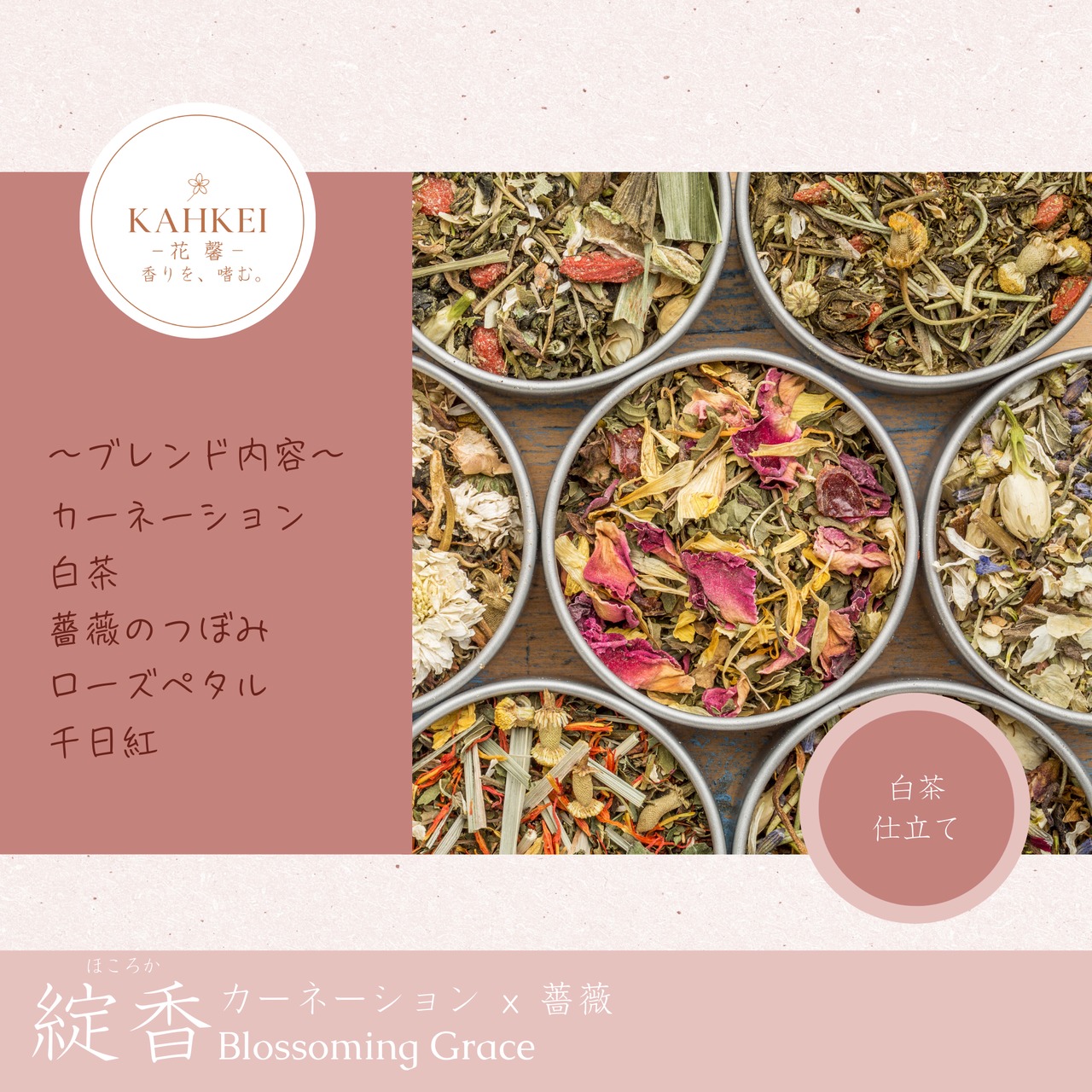 綻香|カーネーション×白茶の花茶|低カフェイン|やさしく香る一杯|茶葉カスタム対応|KAHKEI 花馨