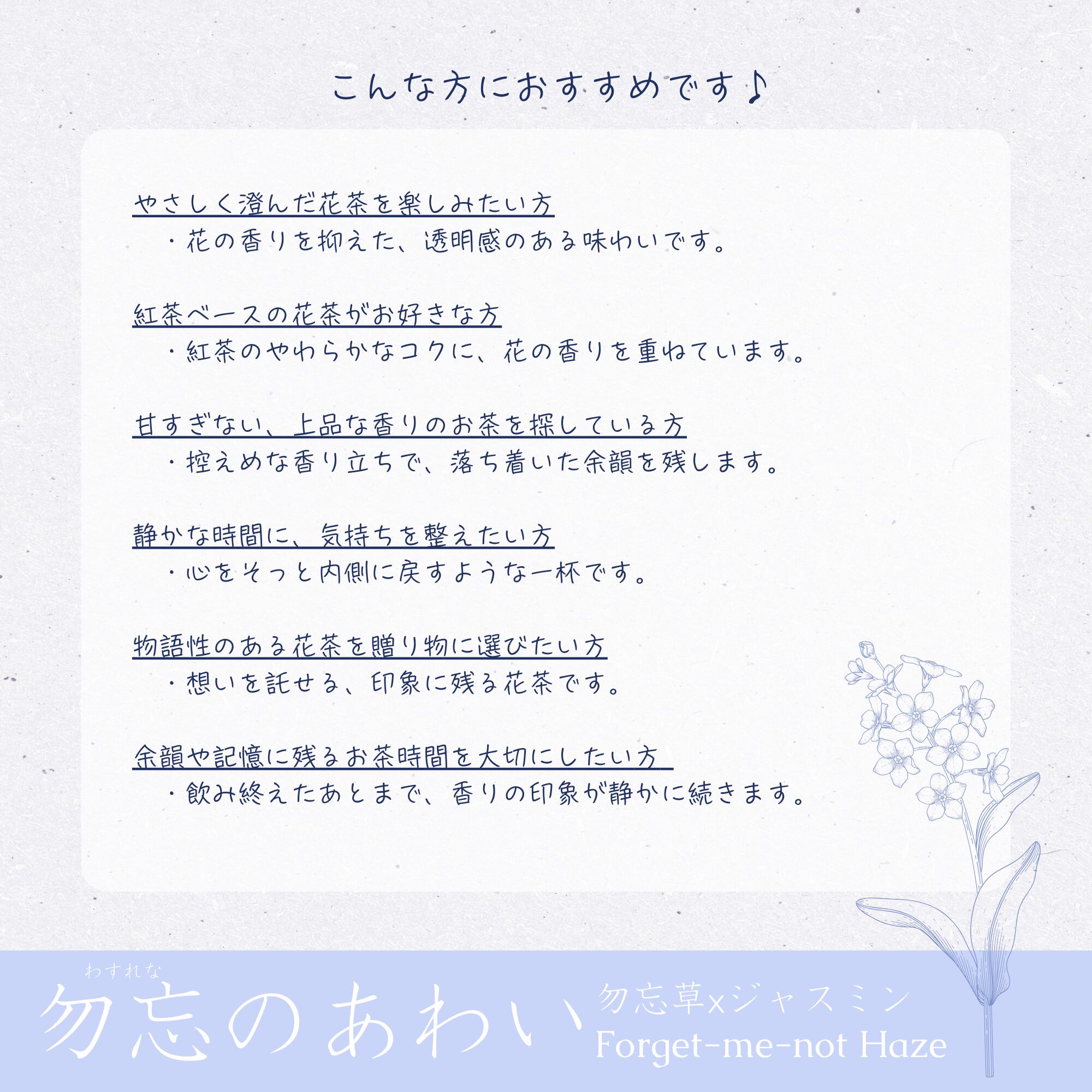 勿忘のあわい|勿忘草×和紅茶の花茶|記憶に寄り添う一杯|茶葉カスタム対応|KAHKEI 花馨