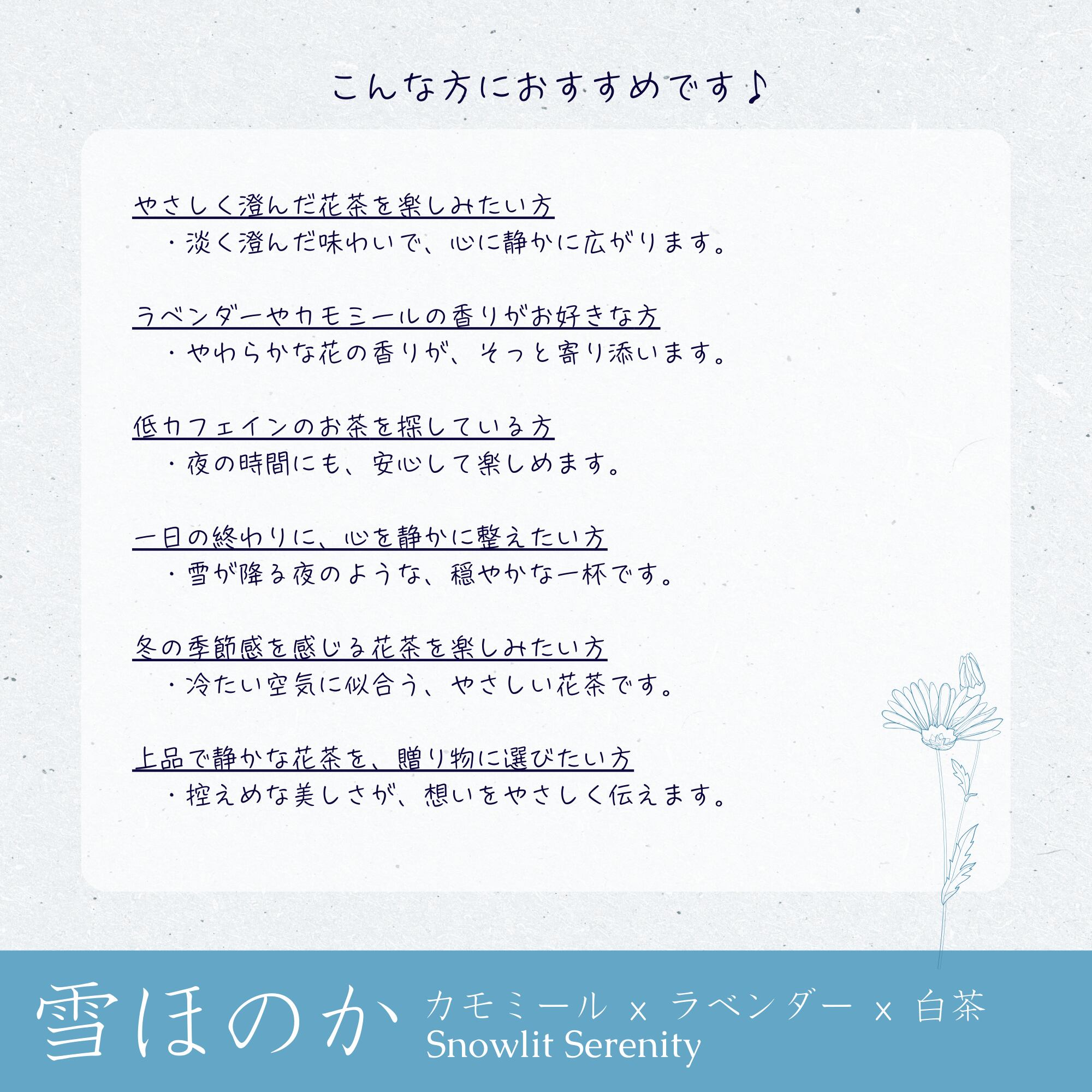 カモミール × ラベンダー × 白茶ブレンド|Snowlit Serenity