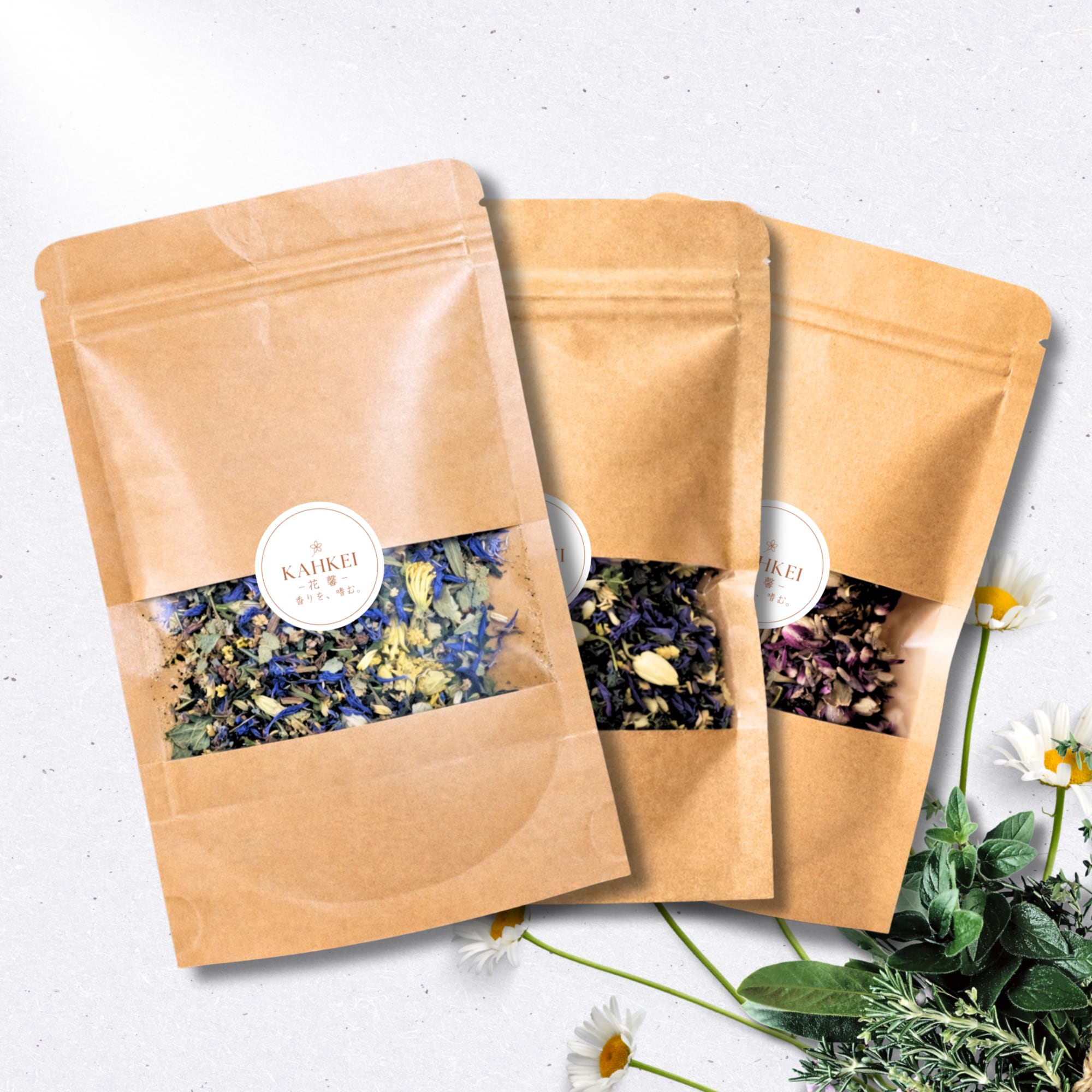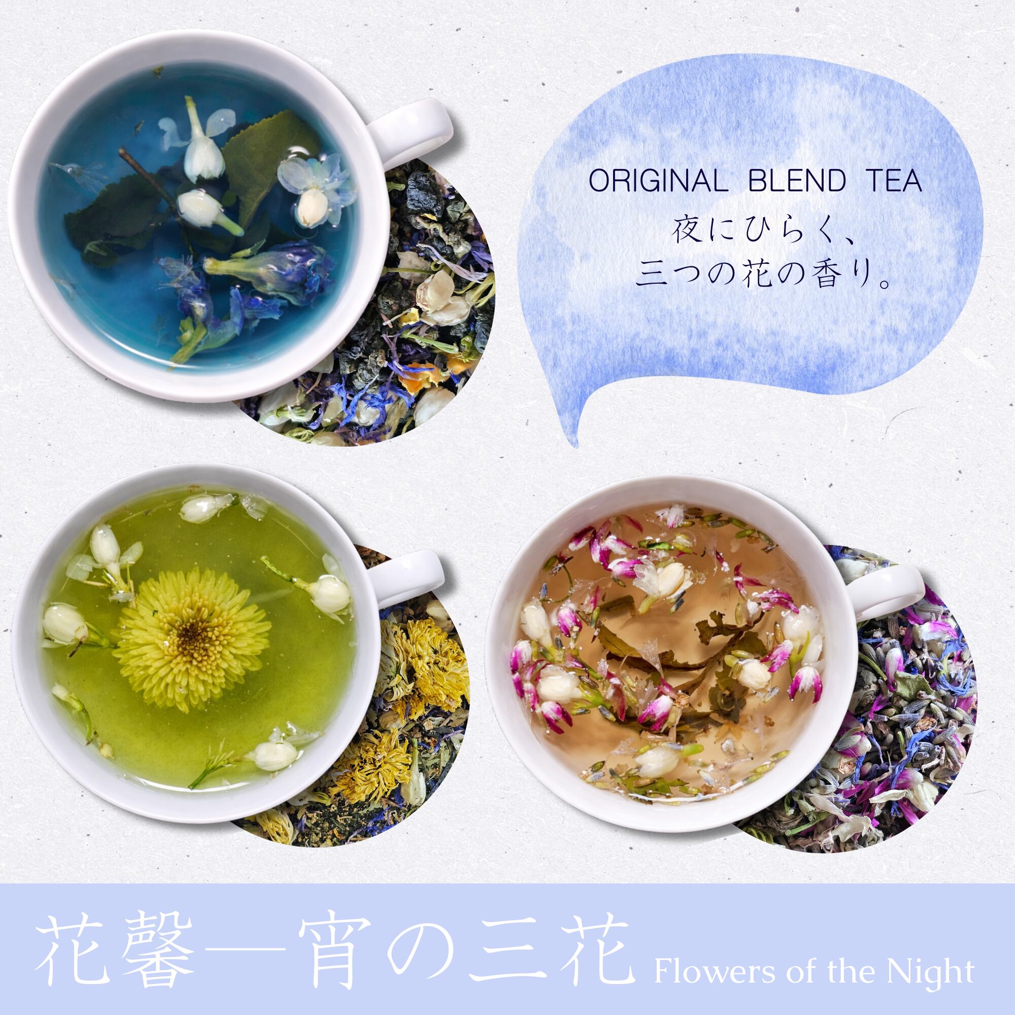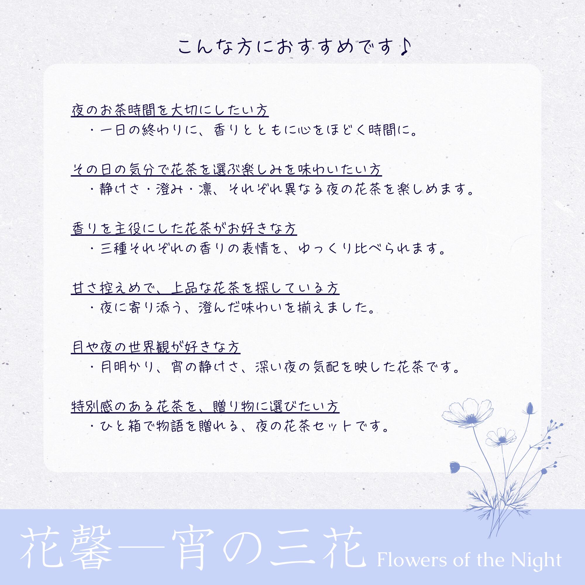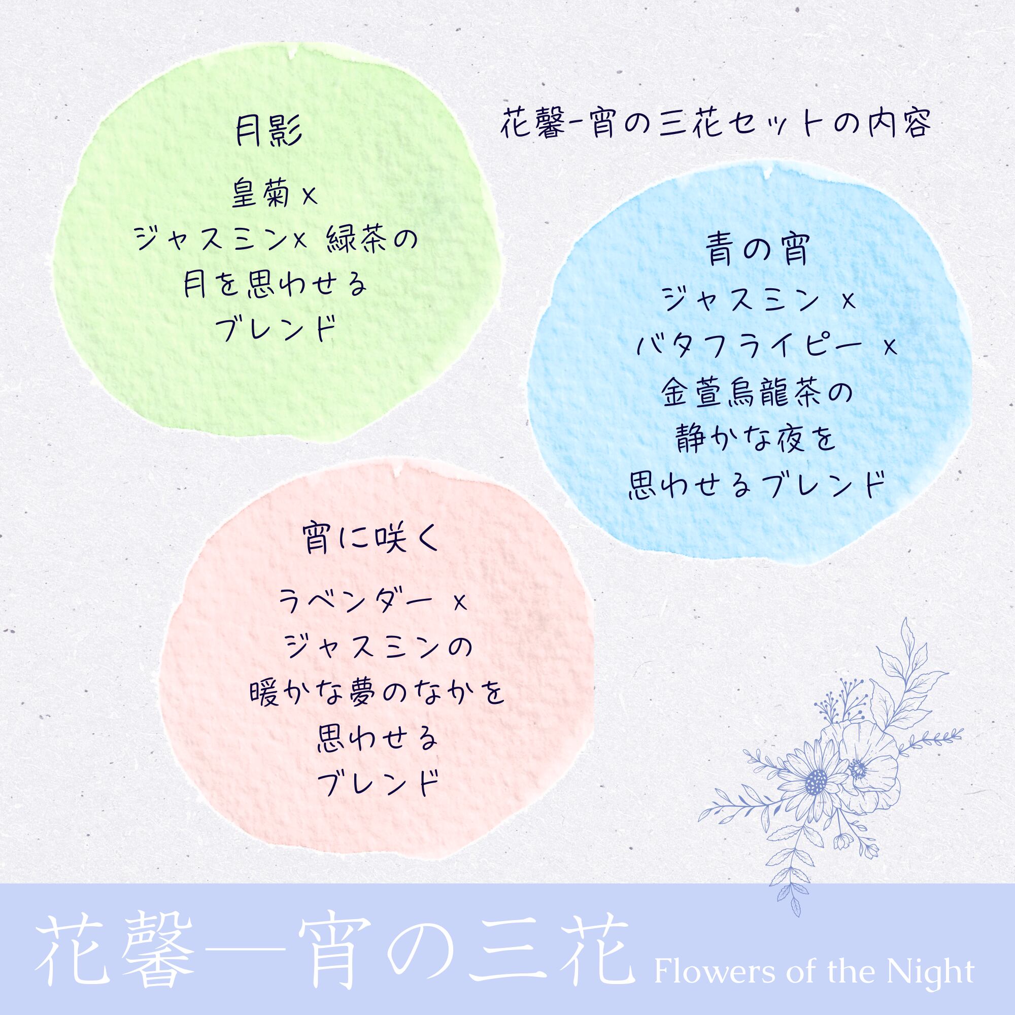 花馨 – 宵の三花|月影・青ノ宵・宵に咲く|夜に寄り添う花茶3種セット|ギフト対応