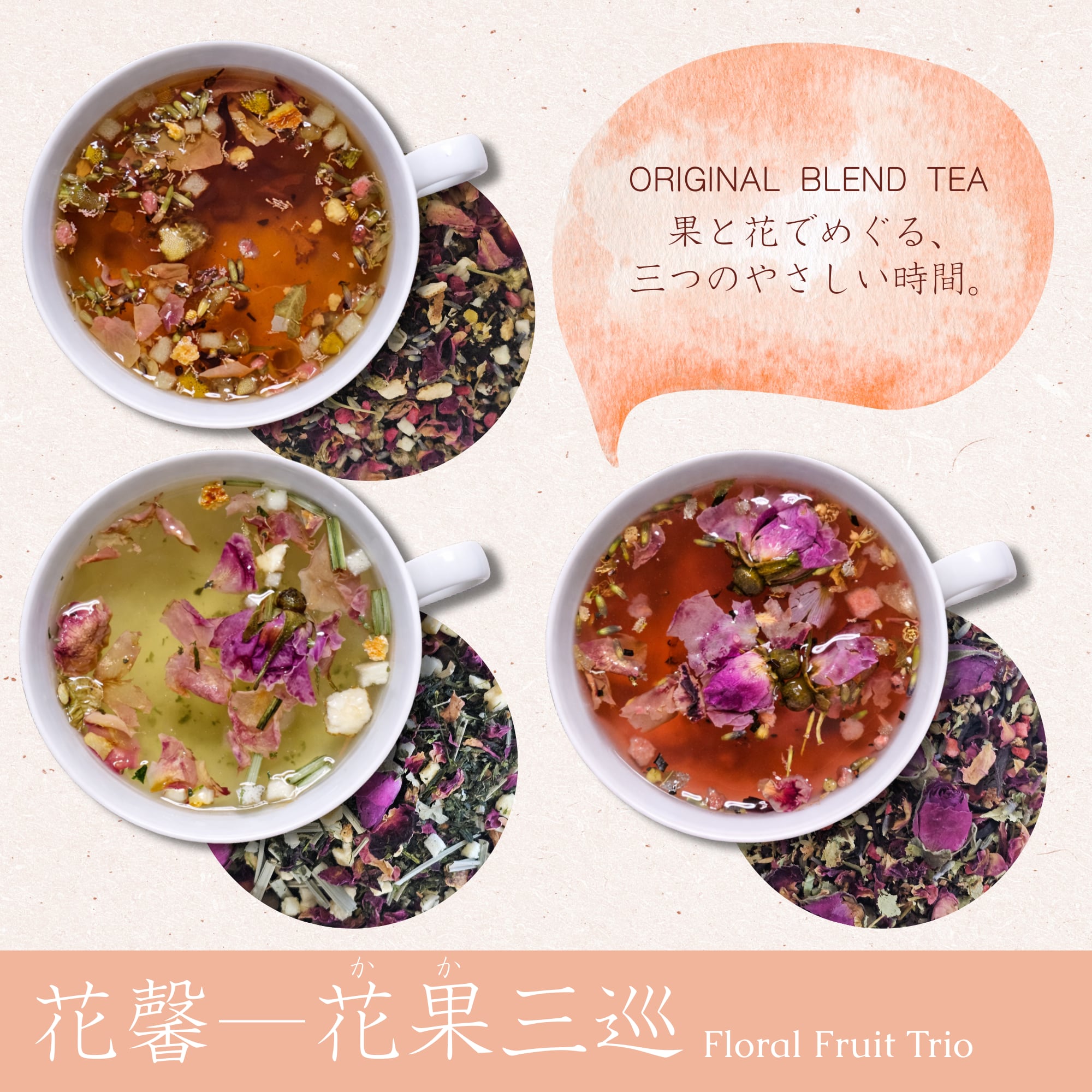 ・花果茶を三方向から楽しめる構成