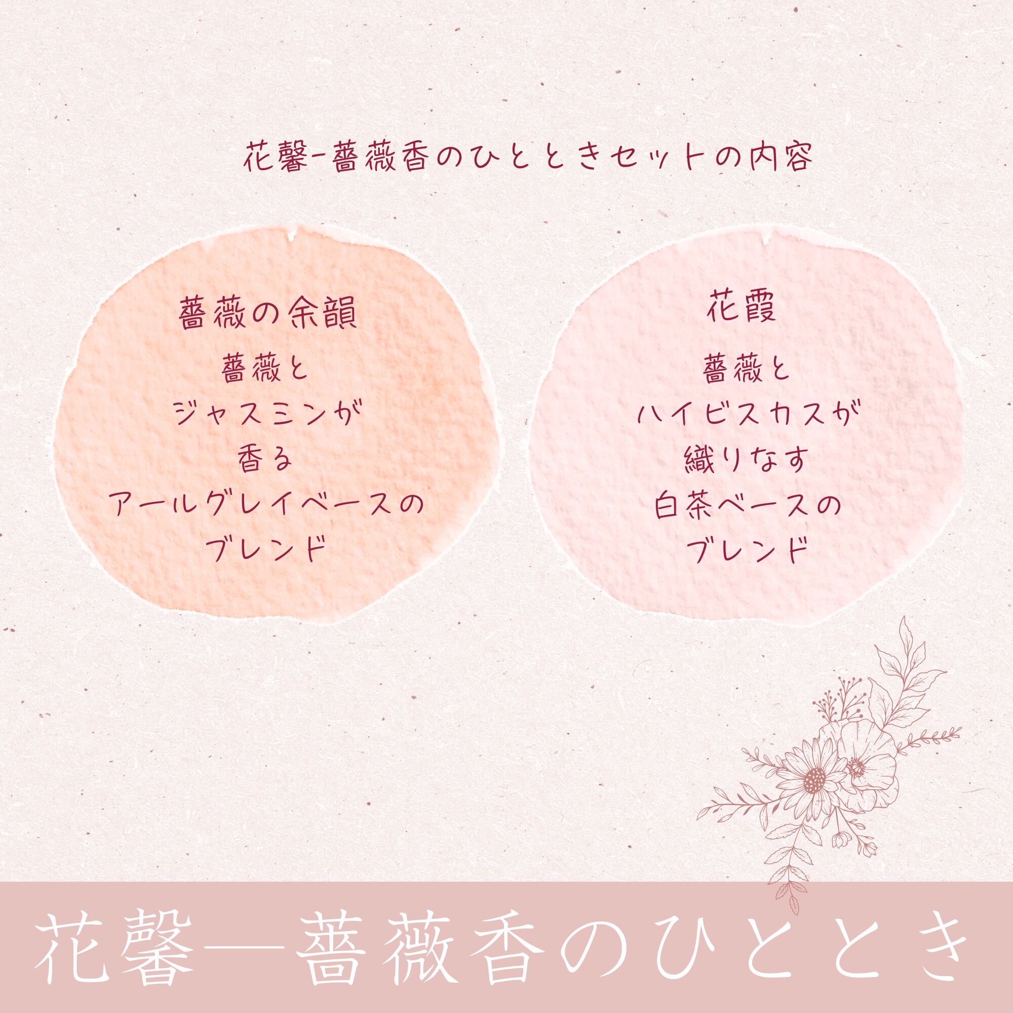 薔薇を主役に仕立てた二種の花茶を楽しむセットです。