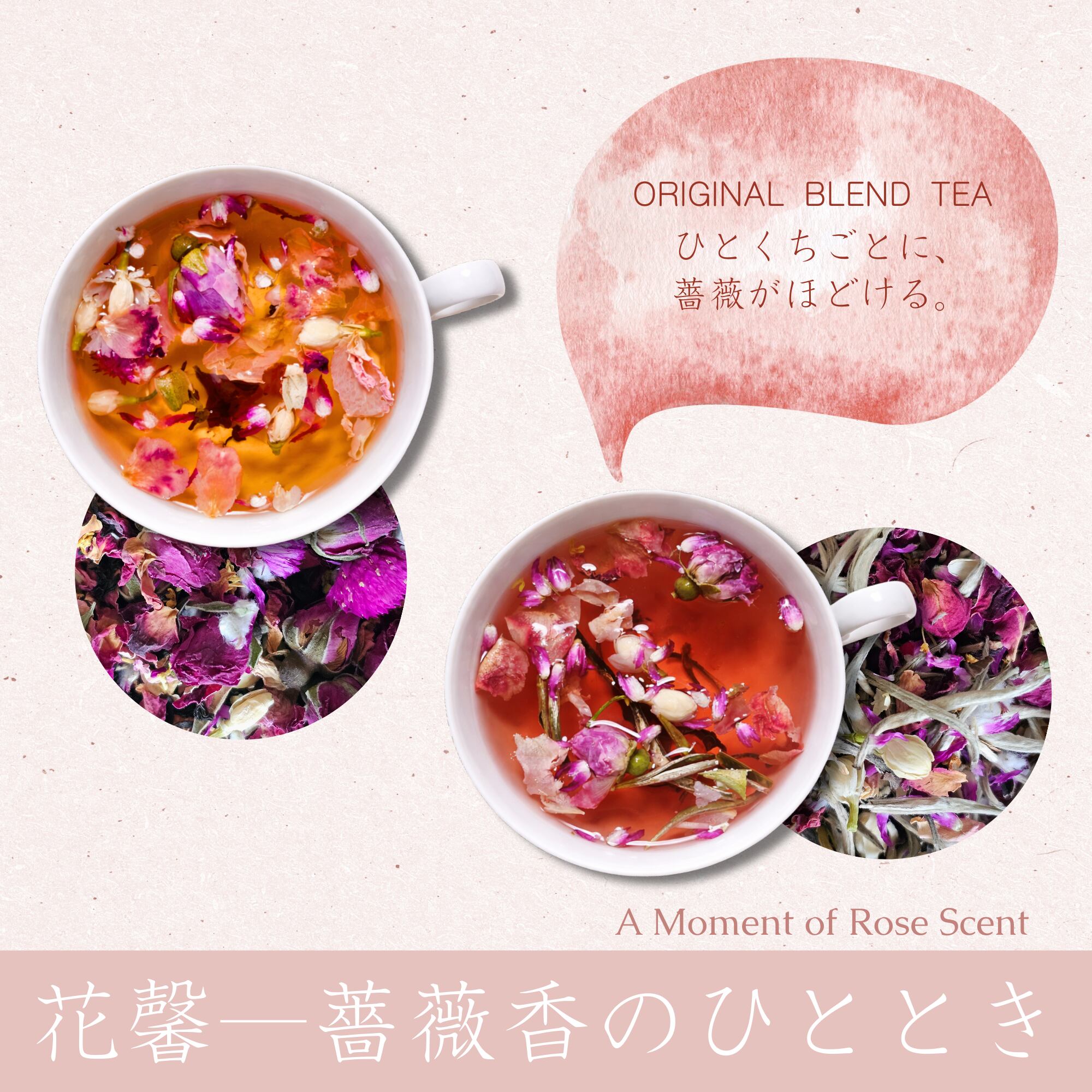重なり合うローズと茶葉が、