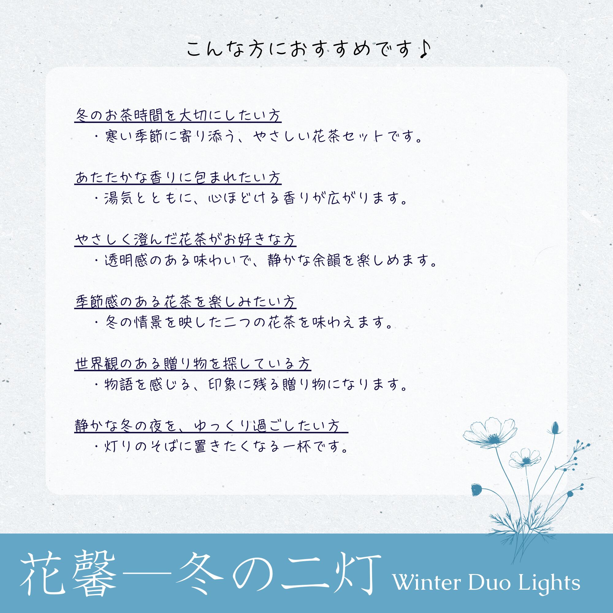 冬の時間を照らす二つの花茶を、
